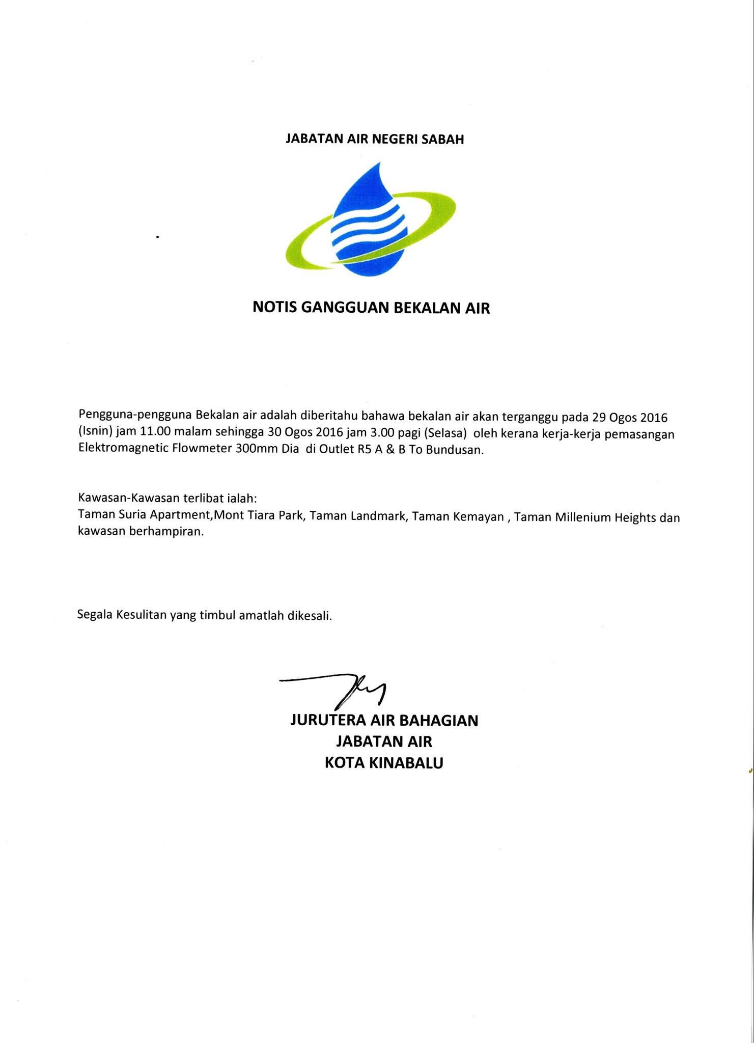 Notis Gangguan Bekalan Air Di Jabatan Air Negeri Sabah Facebook